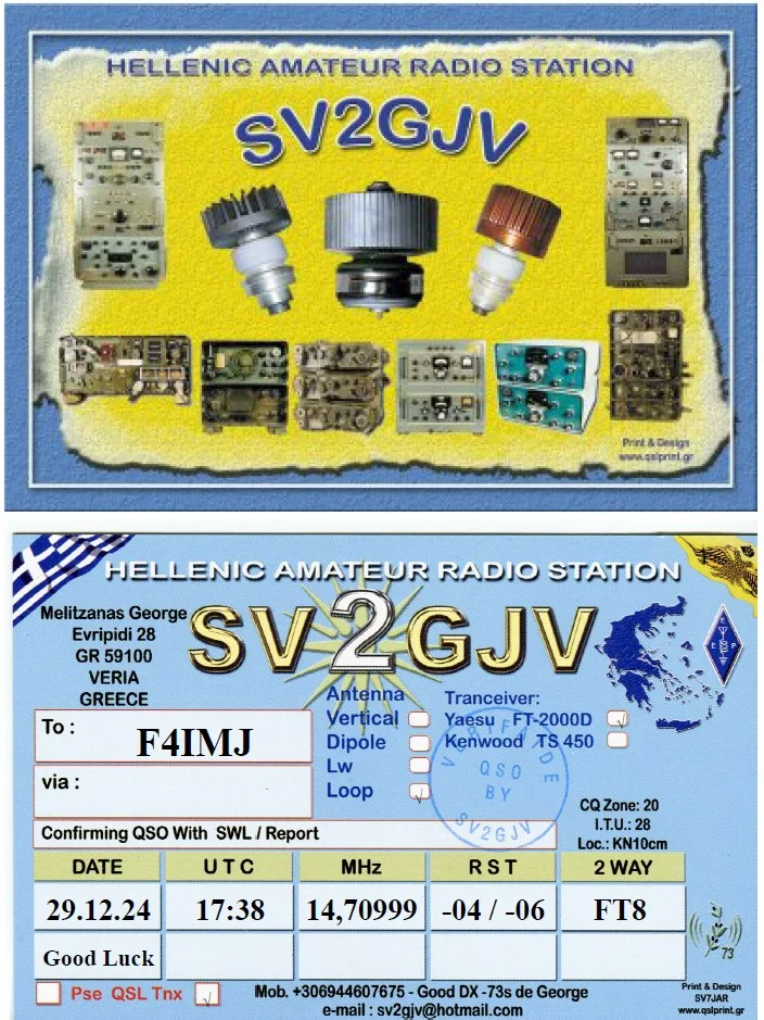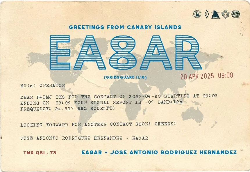 Sur cette page, je vous partage les eQSL que j’ai reçues à la suite de mes contacts radio avec d’autres radioamateurs aux quatre coins du globe, au fil des ondes. Peut-être y trouverez-vous la vôtre ? Dans le cas contraire, qu’attendez-vous pour prendre contact ? Hi… À très vite sur les fréquences !